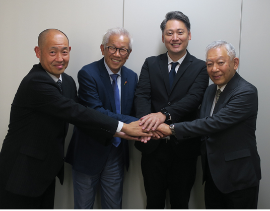 左より弊社副社長、谷沢健一氏、弊社代表、弊社会長